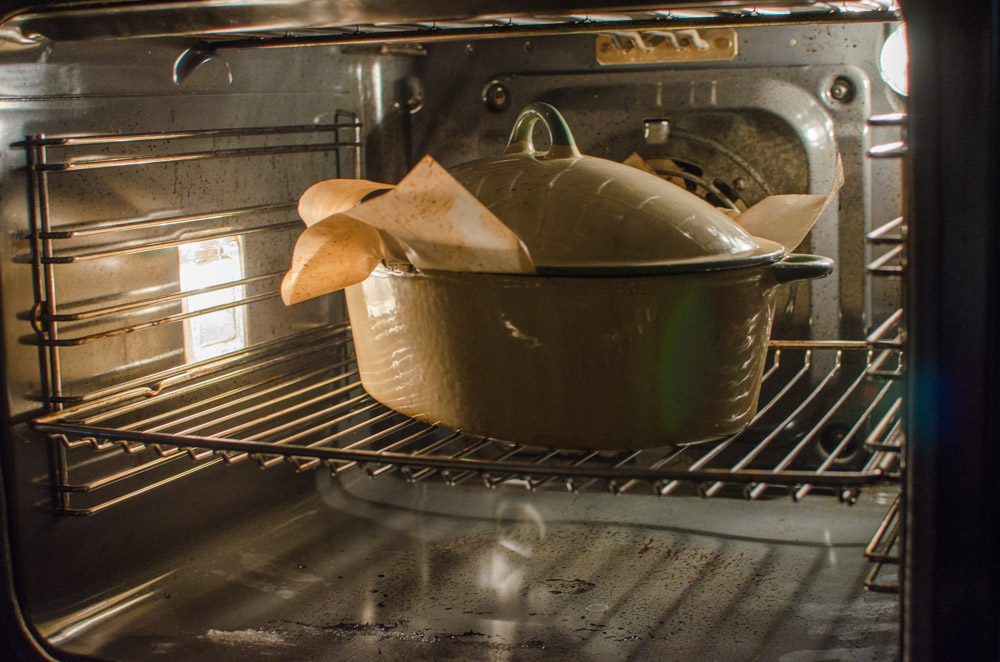 4 liters gjutjärnsgryta i ugnen för brödbak