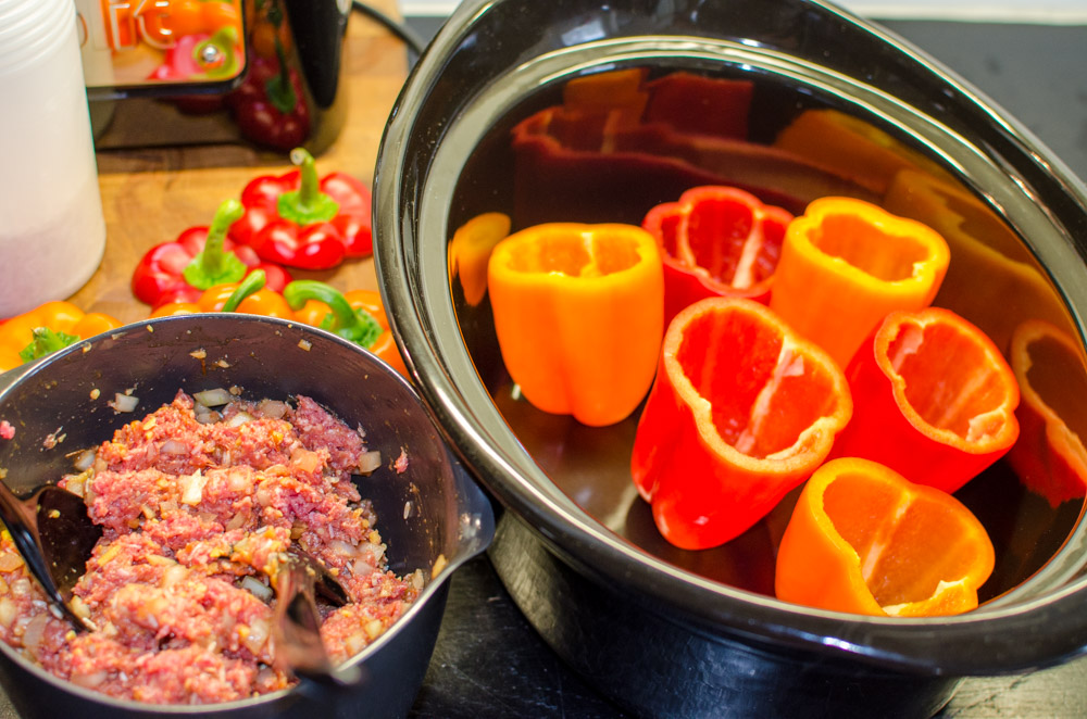 Lägg färs och alla andra ingredienser, utom kidneybönorna, i slow cookern.