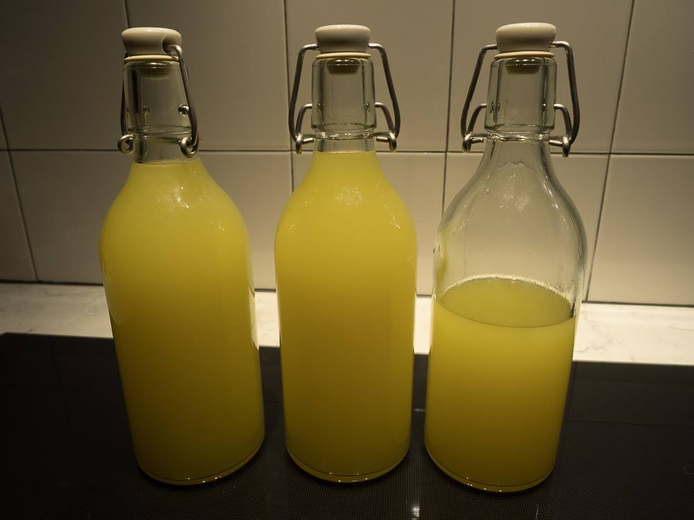 Råvarorna: vodka, citronzest och sockerlagLite smådrygt att riva tio citronerKlart för värmning: citronzest och vodka i vaccpåseKör här med ugnens ångfunktion, vilket funkar braSilar bort citronskalet från vodkan, citronlukten är intensiv!Klart! Rört ner sockerlagen och hällt upp på flaskor.